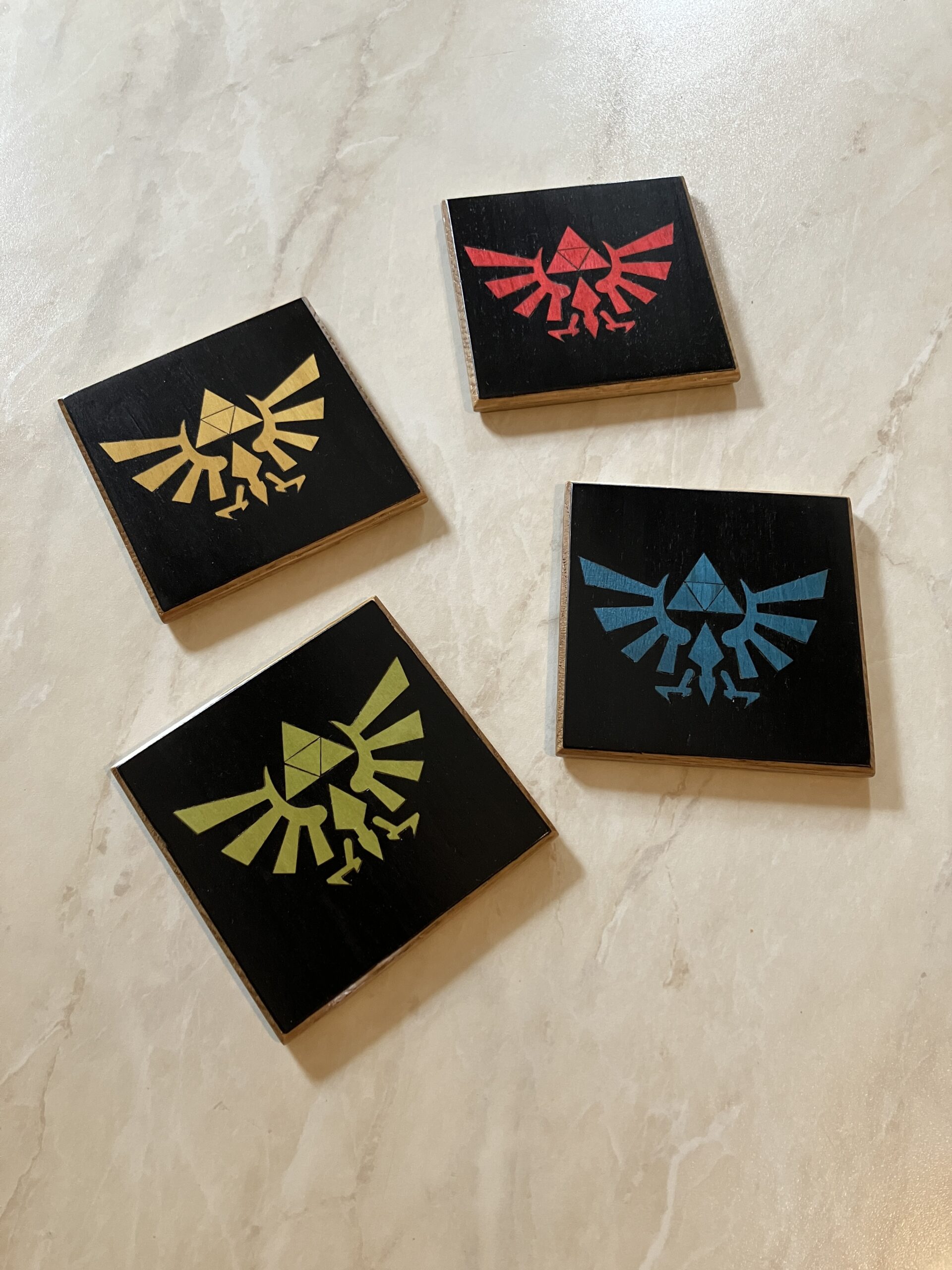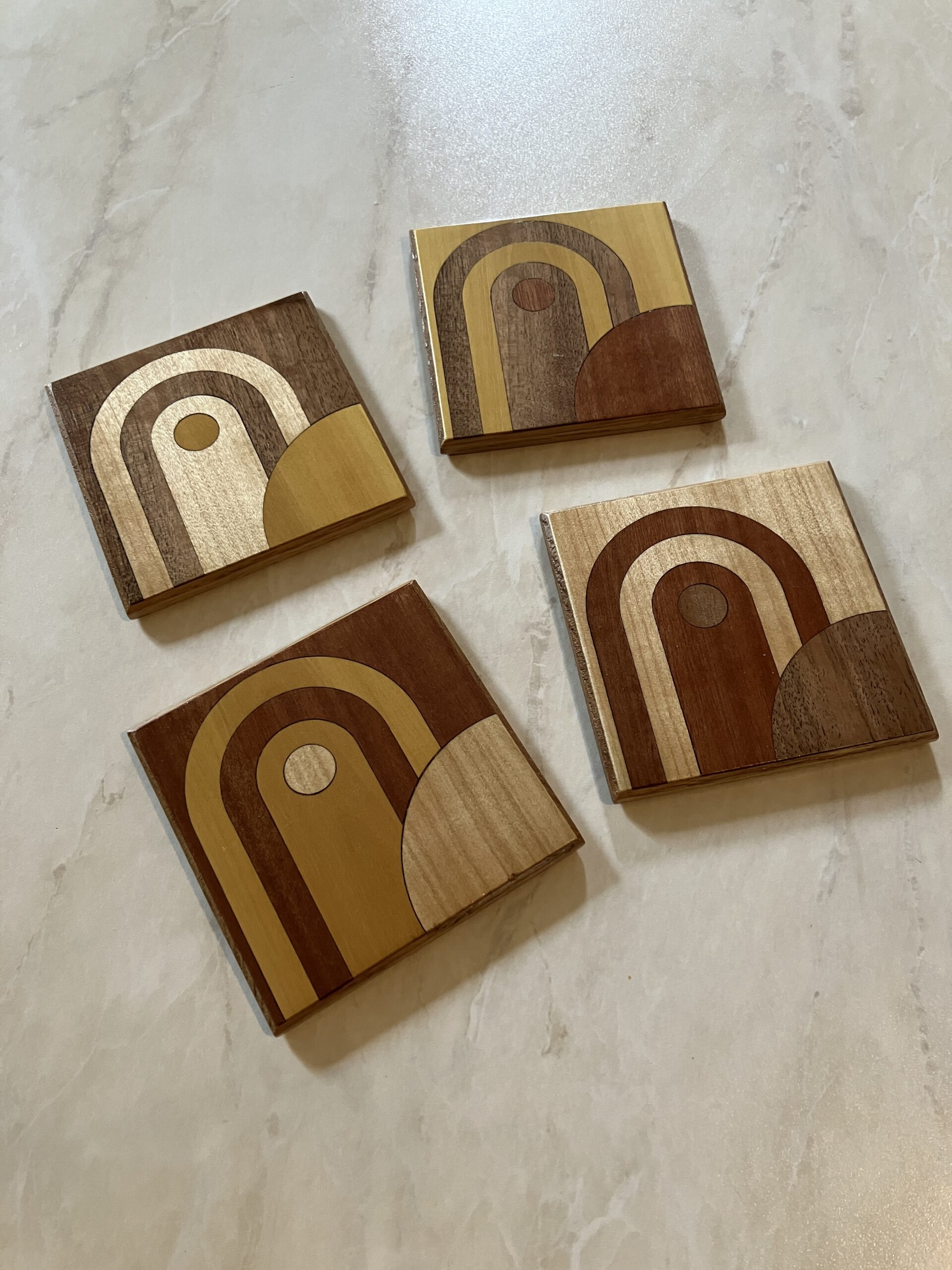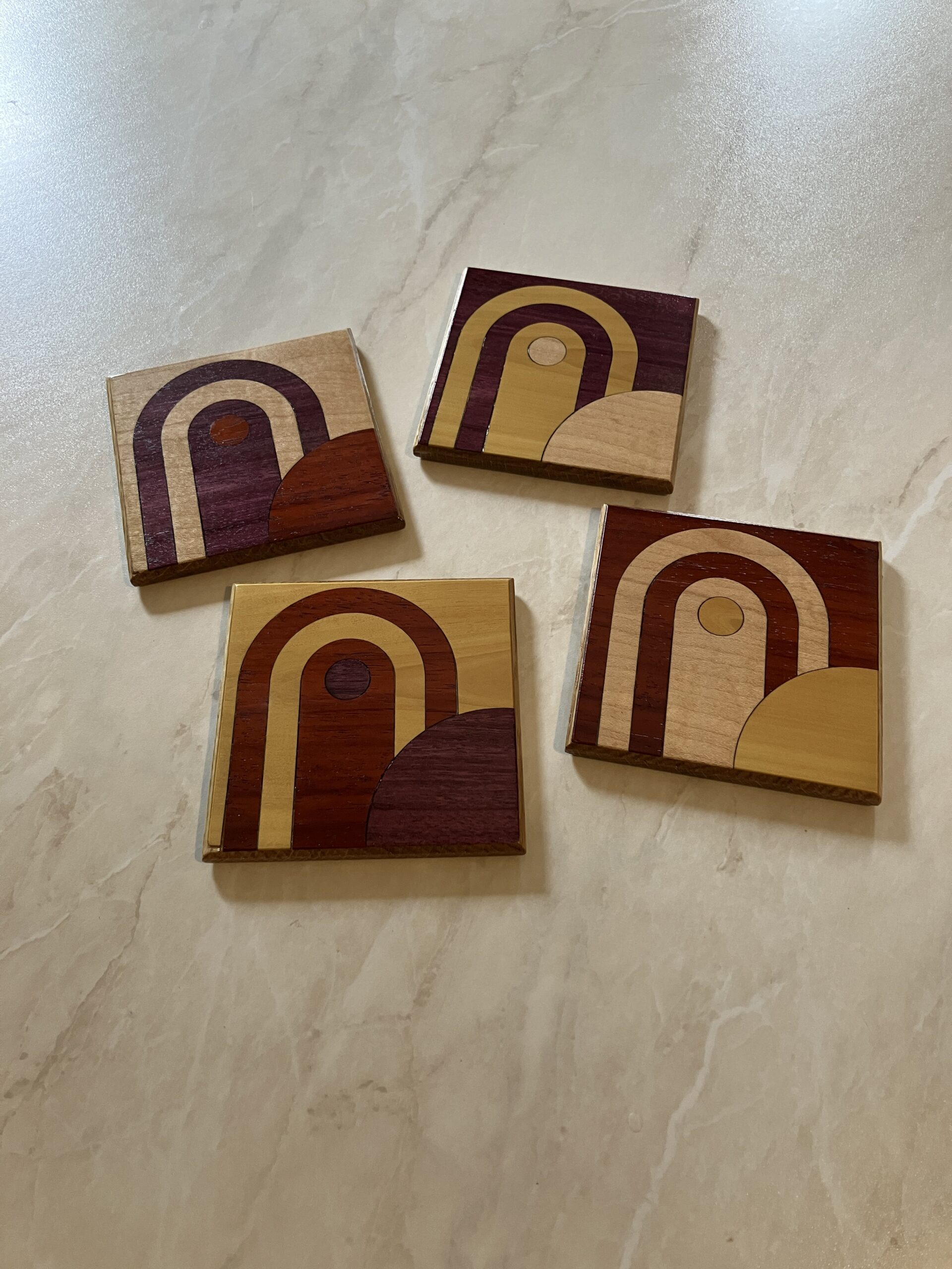 Dessous de verre / sous-bocks en marqueterie, lot de 4 coordonnés