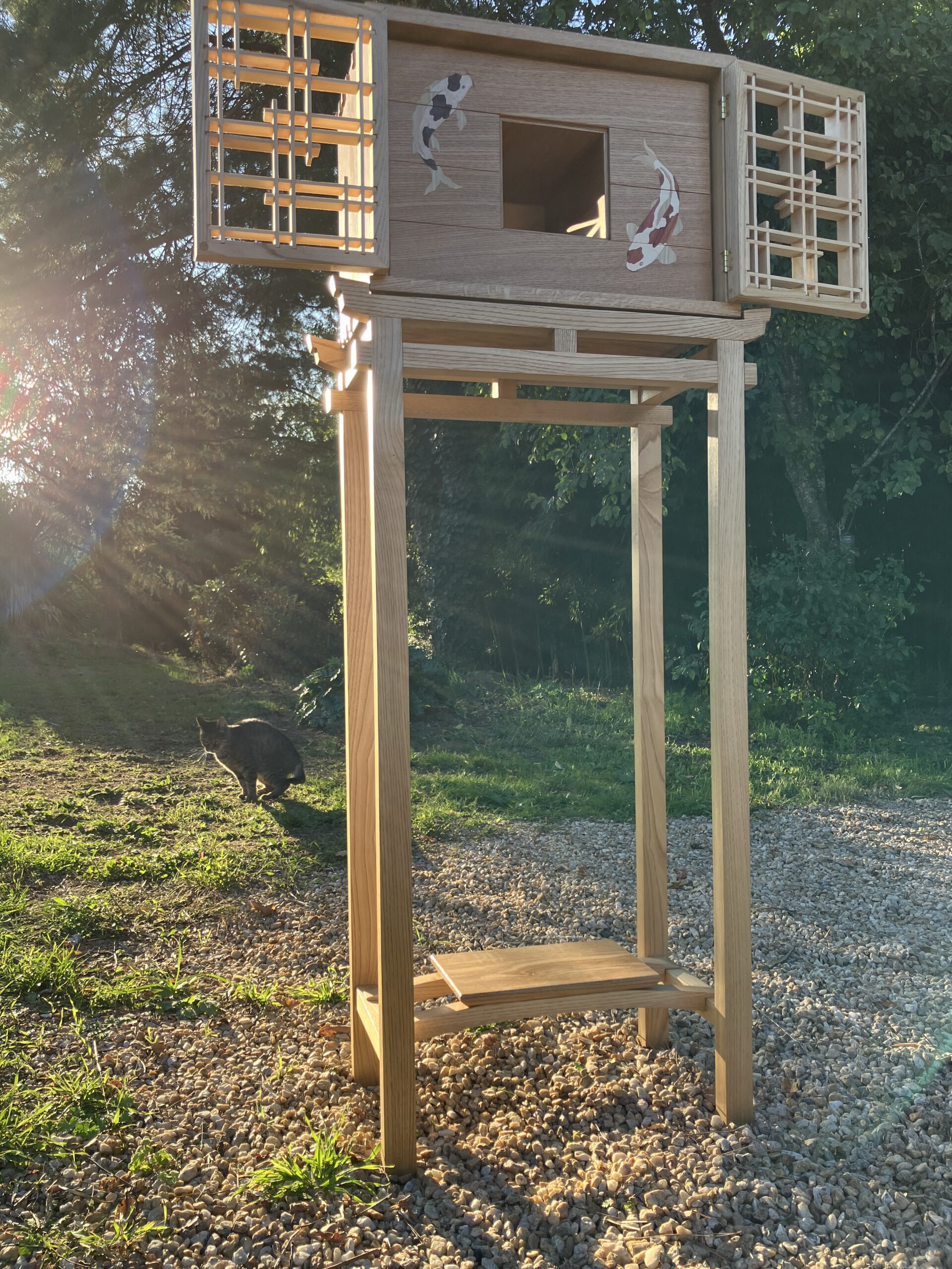 Un coffre de pied-de-lit, chêne massif et décors à l’ébonisation.Cabinet sur piètement d’inspiration Japonaise.Bureau semi-angle, dessus en placage décoratif, structure en chêne, côté plaqué en mosaïque.Buffet marqueté à tiroirs et panneaux coulissants, chêne, châtaignierDuo de chevets en chêne et châtaignier, finition cire d’abeille et carnauba.Bibliothèque courbe, sapin et finition huile blanchie.Petite table pliante, chêne massif et huile-cire.Berceau d’enfant, devenu coffre à jouets, sapin ajouré, montage chevillé, entièrement démontable.Table d’appoint pour une bergère (fauteuil), chêne massif et laçage cuir.Meuble étroit à rideau pour des sanitaires, bâti en chêne, porte coulissante en lamelles de châtaignier. Cabinet à abattant en frêne, marqueterie de frêne et noyer, compartiment caché, enceinte passive pour smartphone.Valisette en châtaignier, poignées en cuir, gravure personnalisée.Pied sculpté et brûlé « yakisugi » pour une table d’exposition.Boîte à couture, deux casiers, chêne et châtaignier